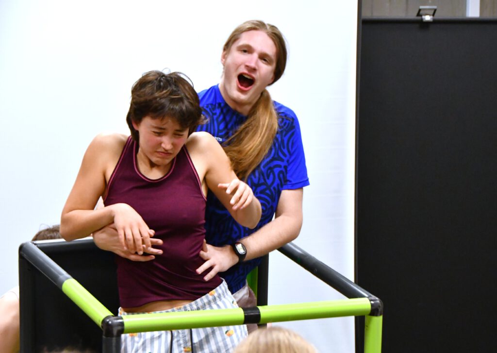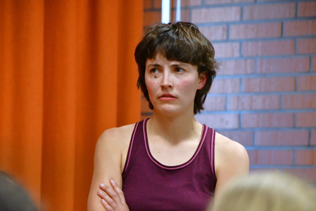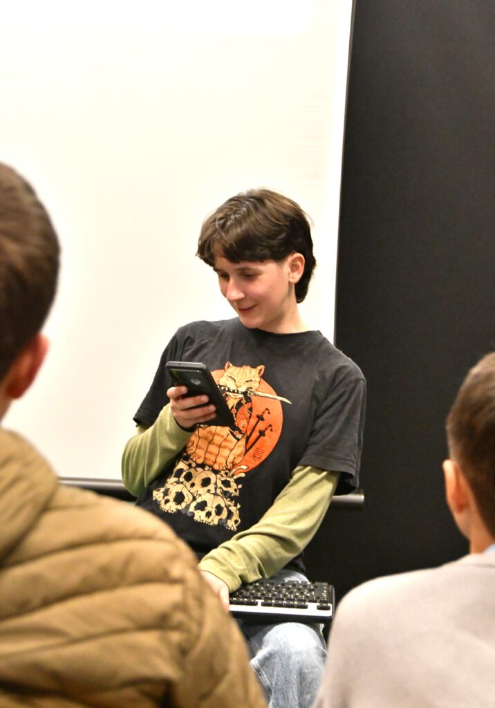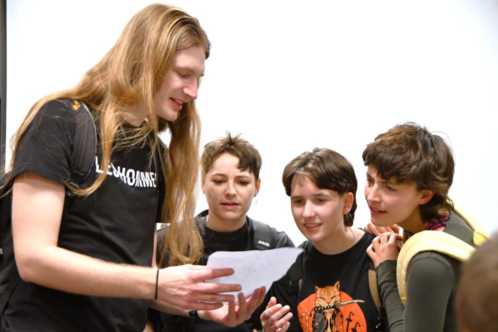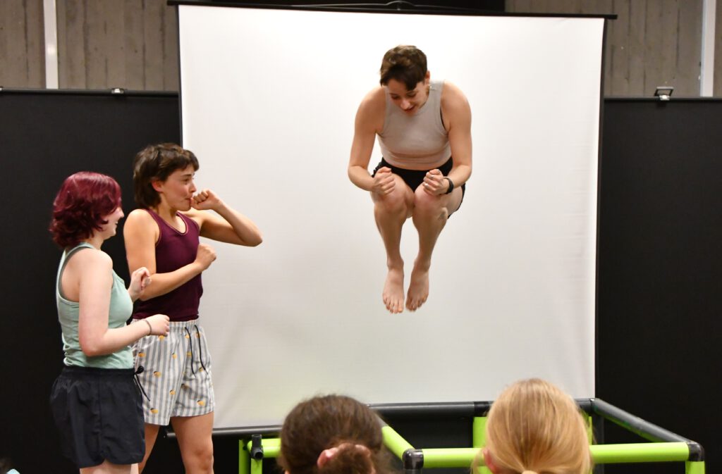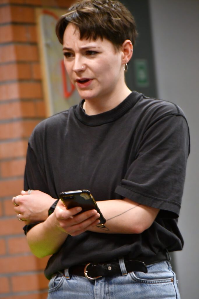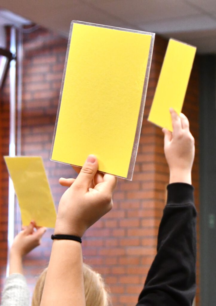 „My Space – Jetzt!“ sensibilisiert für Risiken digitaler Kommunikation, insbesondere für die Gefahren von Deep Fakes. Die Schüler*innen im Publikum werden aktiv eingebunden: Mit gelben und lila Karten stimmen sie an entscheidenden Stellen über den Verlauf der Handlung ab. Jede Abstimmung eröffnet zwei mögliche Entwicklungen und macht die Konsequenzen von Entscheidungen unmittelbar erlebbar.