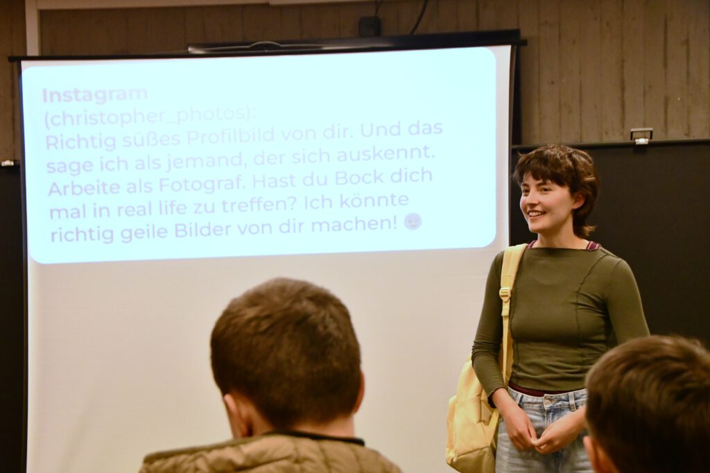 In der anschließenden Nachbereitung wird der schmale Grat zwischen Nähe und Distanz gemeinsam reflektiert. In einem geschützten Rahmen können Fragen gestellt, Erfahrungen eingeordnet und Handlungsmöglichkeiten besprochen werden.